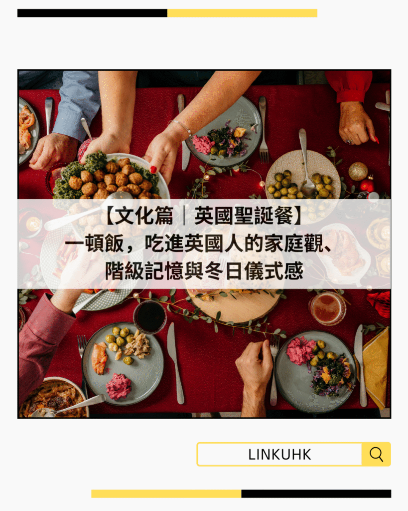 在英國,聖誕大餐不只是節日食品,而是整個聖誕節的核心。對很多家庭來說,這是一年之中唯一一次「所有人必須回家吃飯」的時刻。